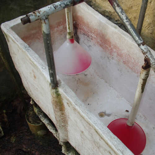 Los embudos se pueden substituir fácilmente si eventualmente se rompen, pero sostienen bastante bien. El embudo rojo brillante fue reemplazado recientemente.