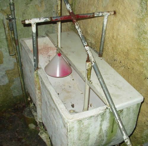 Esbozo de su diseño. Hacer pliegues larga la línea con un soplete de propano de calefacción y doblando el plástico con un trozo de madera. Corte orificios en un lado de los tubos verticales que sostienen los embudos. Doble el borde exterior hacia abajo sobre el borde de la lavadora. Pliegues como el que da el PVC plano mayor rigidez.