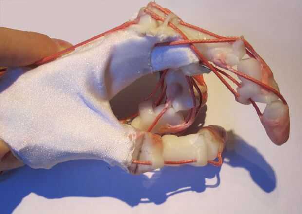 Cadena de alto rendimiento - esto es por los tendones para el más fuerte mejor, Dyneema es el mejor y se utiliza en la pesca, deportes y camping así deben fácil encontrar - 1.5 a 2 mm de diámetro es un montón lo suficientemente fuerte, dejar 1 m por dedo