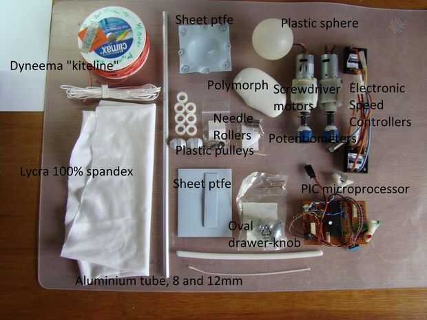 (Aproximado: 46 destornillador motores x 15 $/ Eur 46 potenciómetros x 10 $/ euros, 46 velocidad controladores x 27 $/ euros, microprocesador 6 placas x 30 $/ Eur 5 kilos Shapelock (polimorfo) 100 $/ euros, Dyneema, webcam, altavoces y otros materiales < 300 $/ Eur,)