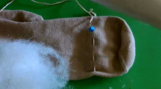 Usando la brecha para rollito su calcetín, llenar la cabeza con relleno y apretar y ate los extremos.