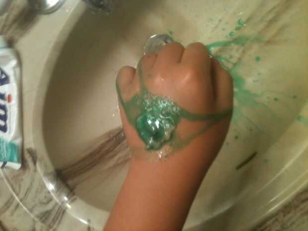 "Cuando vimos este proyecto de Steve Spangler en sitio web de Martha Stewart, hemos tenido una corazonada que podríamos sustituir nuestros colorantes ácidos en lugar de colorante de un color aún más brillante. Experimentación un poco reveló que nuest