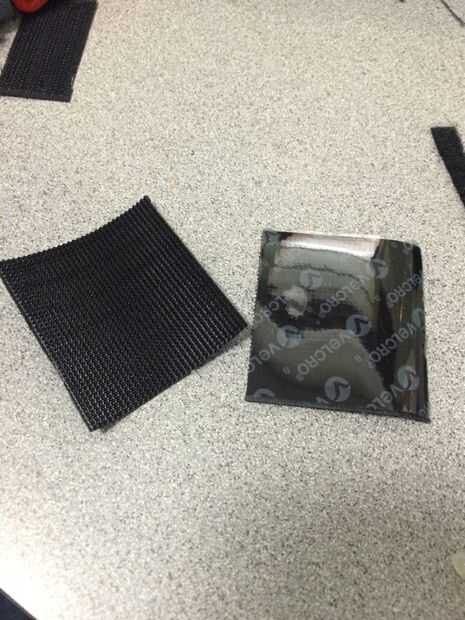 Cortar dos razonablemente tamaño adhesivo velcro gancho cuadrados de igual área y presiona las superficies adhesivas uno contra el otro. Como alternativa, puede utilizar dos cuadrados de tiras de gancho de velcro no adhesiva y pegamento caliente juntos.