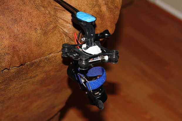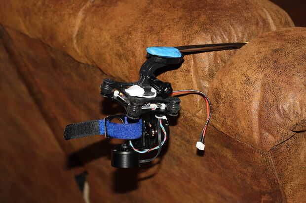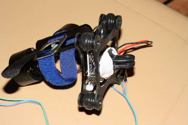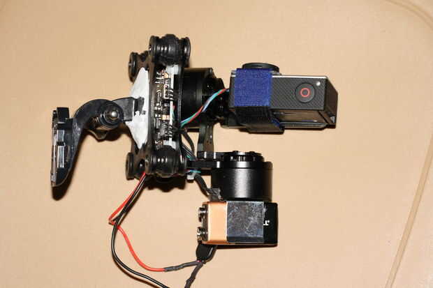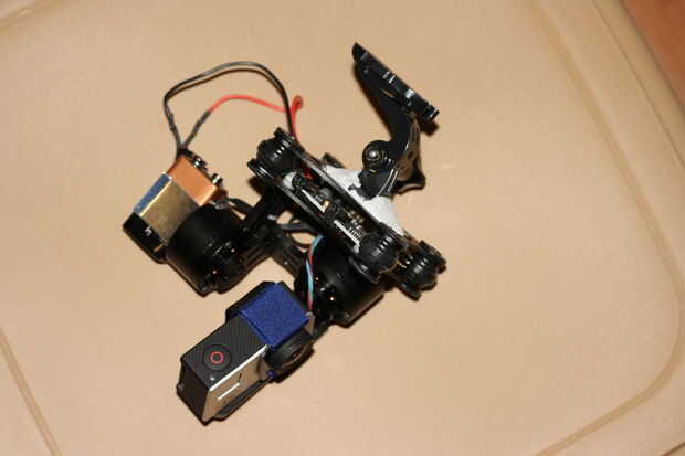 Edición 20/07/14: la batería de 9V no es lo suficiente para poder confiablemente el cardán durante un período prolongado, así que cablear para tomar el recomendado 11.1V batería de LiPo 3S en cambio y han disfrutado de horas de servicio útil en una sola batería.