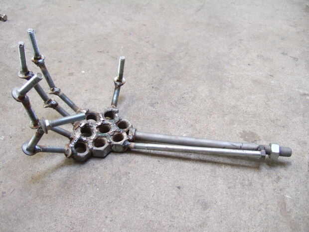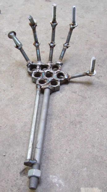 Algunos de sus soldaduras pueden ser un poco fuerte y pokey. puede utilizar una amoladora o muela para moler abajo un poco. Hice este justo en la palma un poco. Utilice un disco de cepillo de alambre para limpiar la superficie del metal para que se vea mejor si lo dejas como está, o por lo que la pintura se pegará si decides pintarla.