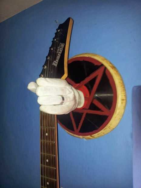 una semana en busca de un apoyo de trabajo para mi cosplay de Marshall Lee decidí que no podía ser muy duro hacer mi propia. Es una construcción bastante sencillo.Materiales•Guitar•3/4 "MDF•Paints•Clay•screws•Liquid clavos o cola para madera de su op