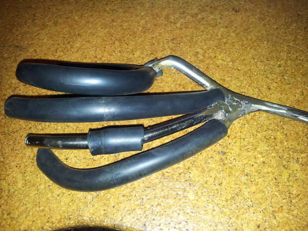 conformado y soldadura de los otros dedos no es necesario, sólo hay que poner un guante en nuestra Fundación y llenan algunos relleno nada mantener esos dedos. Pero tomé el problema de que todos los dedos están hechos de hierro, así los dedos el přivařil resto nazohýbaných cuidado con que parecen dedos de una mano, comprobar si la forma del soporte en comparación con las manos en la posición de sostener la guitarra real.