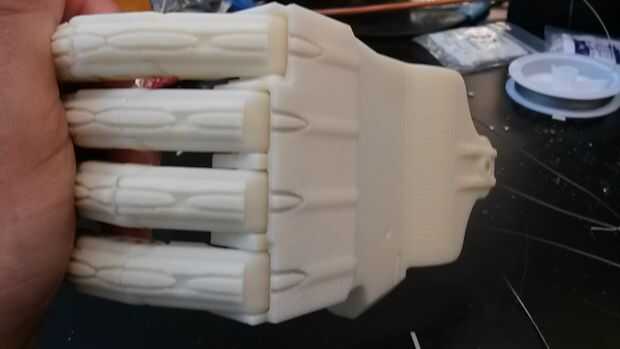 Esta cubierta de Corredera articulada tiene los anclajes proximales para la final de bandas elásticas. La cubierta simplemente cae dentro de las ranuras en la parte posterior de la palma y se empuja hacia delante en su lugar. Tenga cuidado de no ajustar las pestañas pequeñas en la parte inferior de la cubierta.