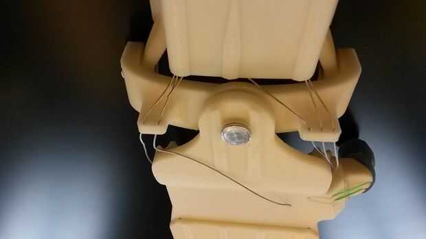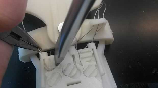 Esta es la parte más difícil del proceso de construcción. Pelacable giratorio tiene dos grandes cabeza plana ranuras para eso si se rompe (son especie de frágiles) se puede utilizar el otro. Además la ubicación de la beadwire a través del agujero impide una ranura centrada.