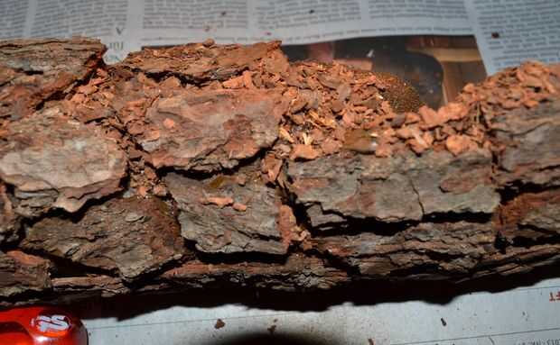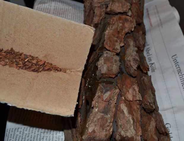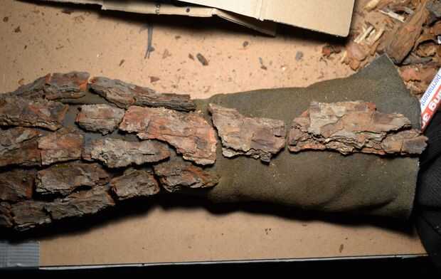 Entonces montado pieza por pieza en el guante. En el ultimo paso llena los boquetes entre los pedazos de la corteza con el "polvo de la corteza".
