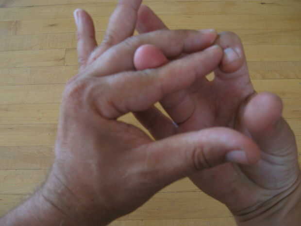 Los dedos medios son las cejas y los dedos del anillo son las bolas de ojo. Empezar haciendo la mitad de la cara. Luego realizar el otro lado. Los dedos del anillo hará una "X" si se hacen bien.