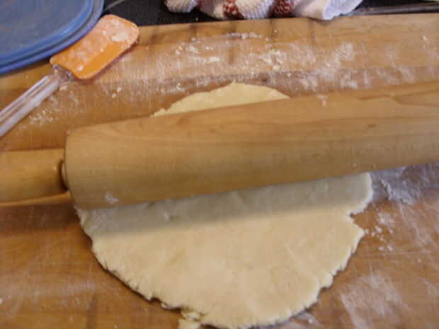 Siempre el rodillo el rodillo lejos de ti, no hacia usted. Extienda el disco un poco, luego gírelo 90 grados. Seguir la tabla de cortar y amasar la harina medida que avanza. Mira las fotos a continuación para obtener más información. También, seguir adelante y se ríen de mis dibujos de pintura cruda.