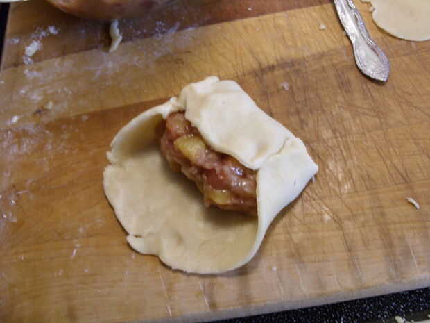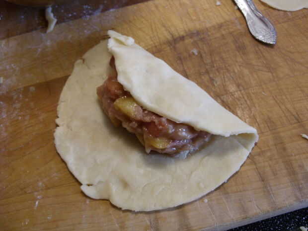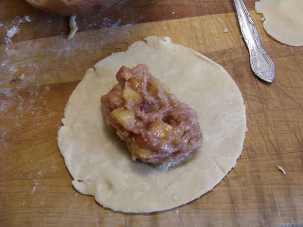La cantidad de relleno que pongas en tu pastel dependerá del tamaño del círculo, pero el relleno debe cubrir cerca de un tercio del círculo de masa. Si pones en demasiado, la masa se romperá, si pones en muy poco, bueno, la gente conseguirá enojada con usted.