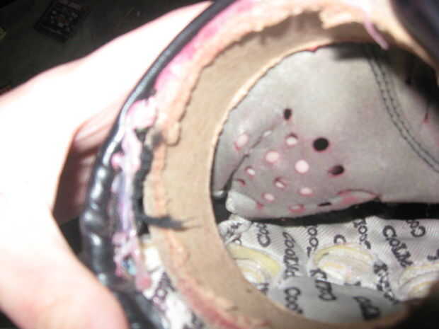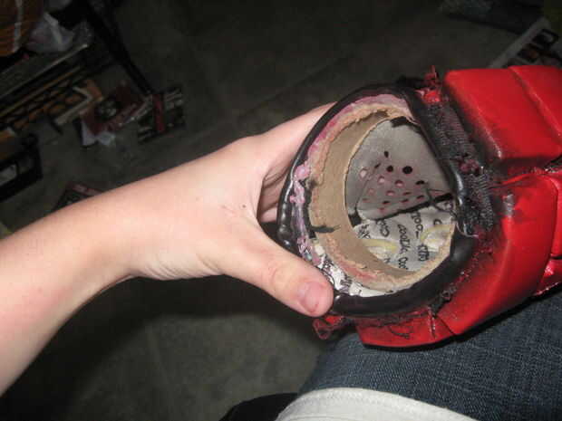 Ok, si el tubo principal es demasiado grande, cortar, hasta que puede mover todas sus articulaciones cómodamente. Luego tomar el guante y cortar todas las piezas exceso, algo que no es el guante real. Para mí, fue la primera imagen. Ahora vas a querer cortar tal vez una pulgada o tan. Luego tome y coloque en el interior de su guante en la parte inferior. Asegúrese de que todos los dedos, especialmente el pulgar pueden cómodamente, y luego caliente del pegamento que en. Debe buscar como los dos últimos cuadros