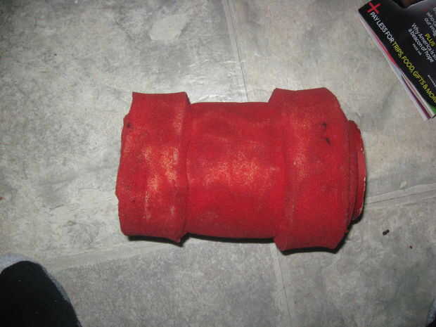 Sacar la pintura acrílica roja y tubo principal y establecidas sobre un trozo de periódico. ahora si quieres conservar la pintura y el tubo principal más un aspecto rocoso, este es el paso donde se puede enyesarlo abajo con tiras de yeso. Yo diría tal vez dos capas de yeso, para asegurarse de que no es demasiado pesado. Asegúrese de que usted suavizar las tiras cuando te lo pones, así que no tener pequeños orificios cuadrados. luego empezar a pintar. Si pones en el yeso, una capa de pintura debe hacer ya. Si usted ha utilizado espuma, vas la necesidad mucho más pintura. la pintura absorbe profundamente en los agujeros de la espuma, consumiendo más pintura. después de pintar, dejar que el tubo seco por unas horas. Luego tomar algunas toallas de papel y la escobilla de goma de la pintura, lo que seca más rápido. después de eso, usted puede poner en los detalles de crack con una mezcla de acrílico rojo y negro.
