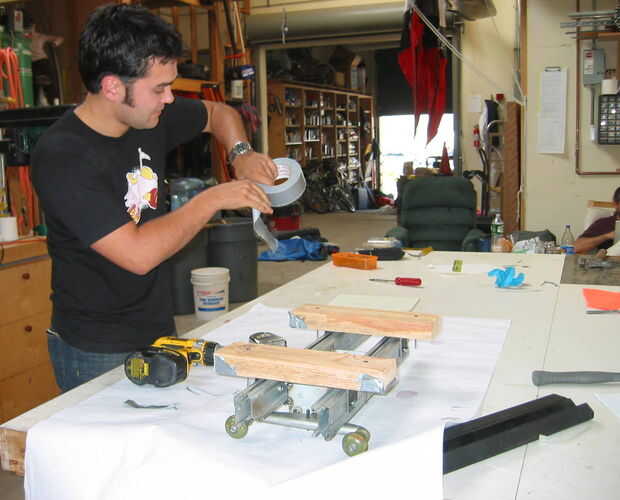 El contador hemos querido montar la unidad bajo tiene un labio alrededor de él, así que hemos añadido estos trozos de 2 x 4 como separadores. Habría sólo malabares, caído y maldijo, pero hongo tuvo la brillante idea de cinta adhesiva en lugar temporalmente.