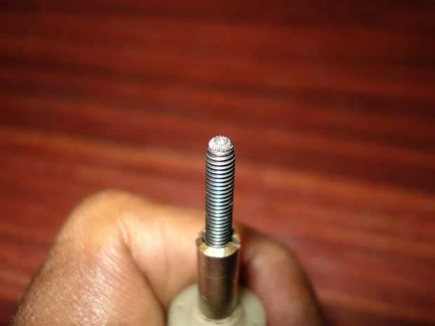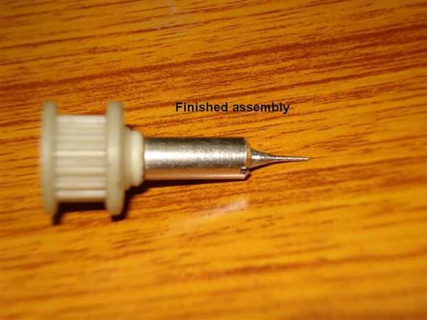 a continuación fijar el pedacito de taladro previamente hecho en el montaje screw.now inserto esta Asamblea de agujero en el eje del motor.