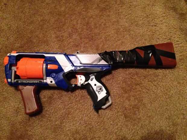 Tomé la empuñadura y la culata de mi juguete AK-47 y grabado/pegado a la pistola de nerf.