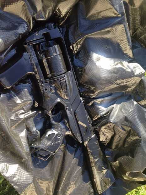 Tomé la pistola y el aerosol pintado totalmente negro con marcas gris (darle una mirada resistida). Usted puede, por supuesto, pintarla de todos modos que desee, pero lo he pintado parece la mejor.