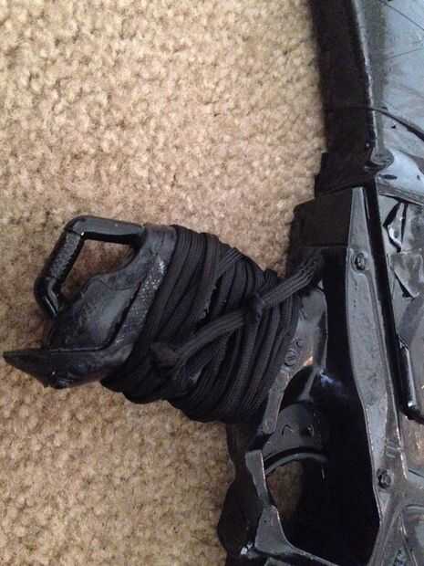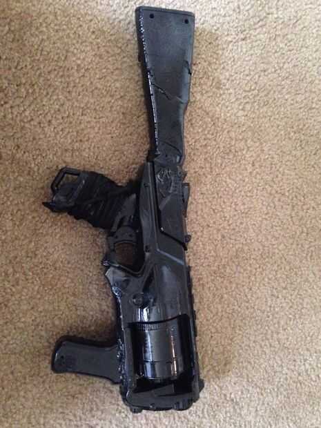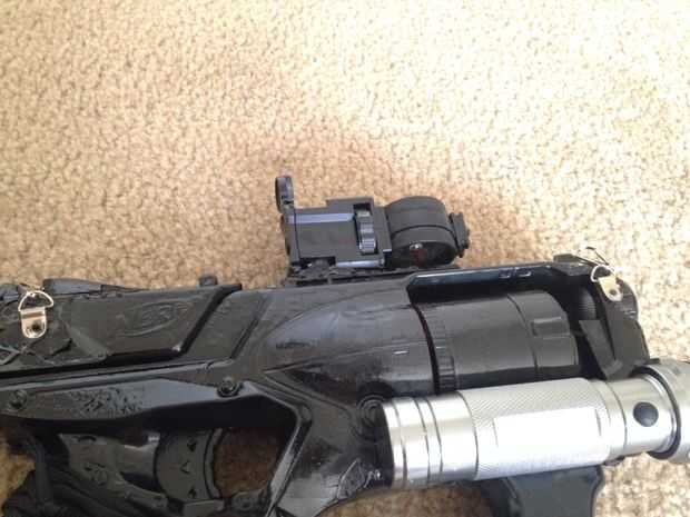 Una vez que su arma está secado, puede Agregar los accesorios. En primer lugar, elegí usar paracord para hacer un agarre. Entonces añadí una linterna, un ámbito (yo usé un par de binoculares plegables baratos) y dos pequeños clips para una Honda.