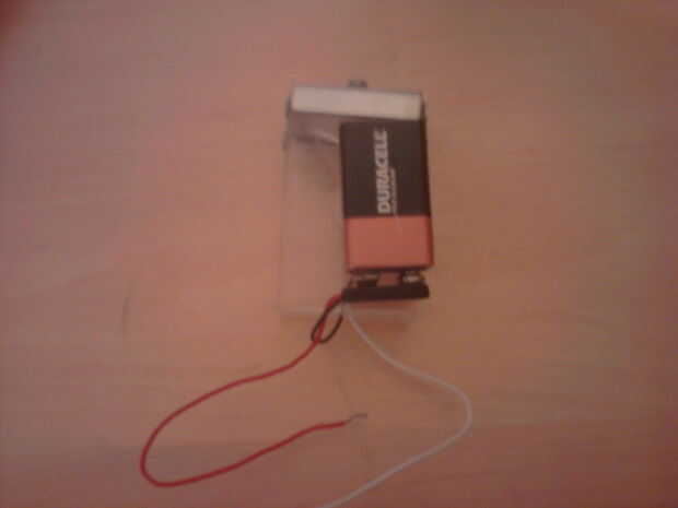 6. mientras presiona el interruptor y tocar los cables juntos debe obtener pequeñas chispas muestran las obras de arranque.