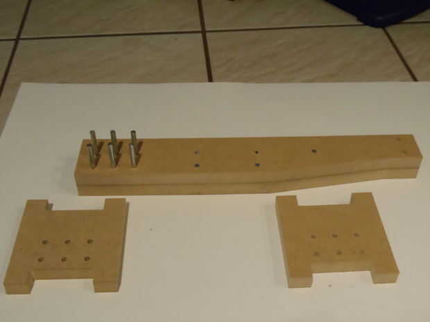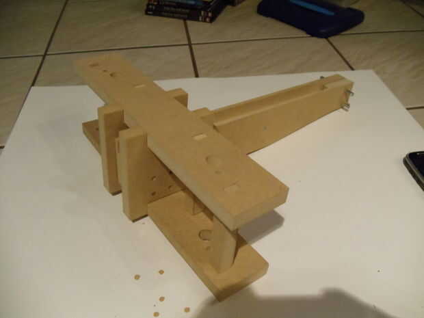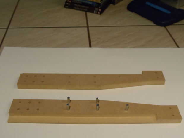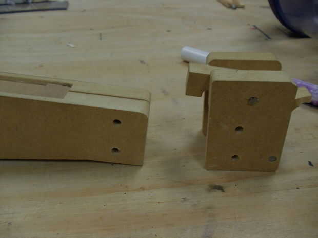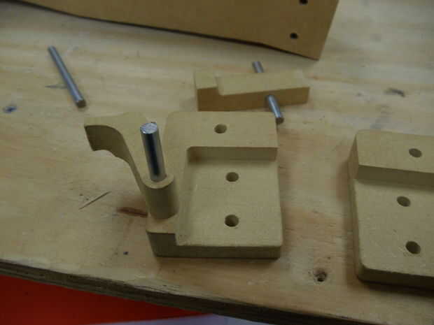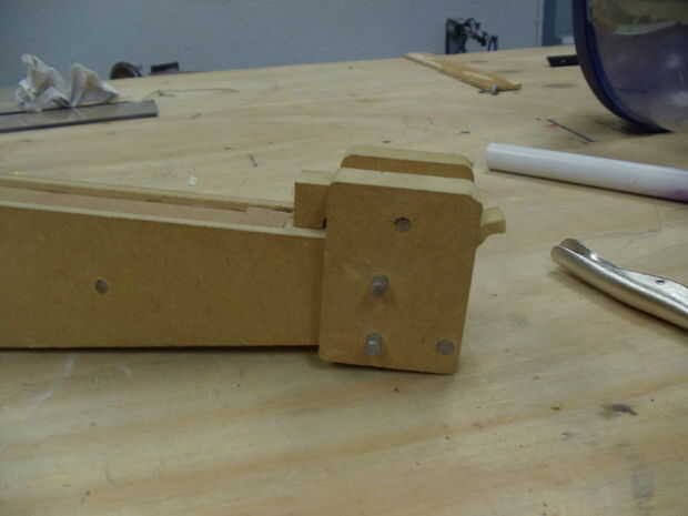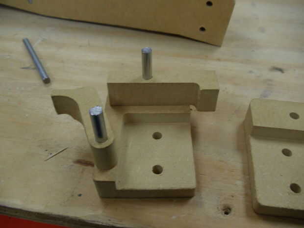 El mecanismo de cierre se ajusta en la parte posterior de la ballesta. Siga el conjunto 3D para construirlo. Los restantes 2 3" pasadores de ir en los vuelta 2 agujeros en la culata y las placas laterales de la corredera de bloqueo sobre ellos. Las 2 partes del mecanismo interno de suben interior y la línea con los otros dos agujeros en la placa de bloqueo. Las 2 partes del mecanismo del gatillo se mantienen unidas por pernos de 2.25".