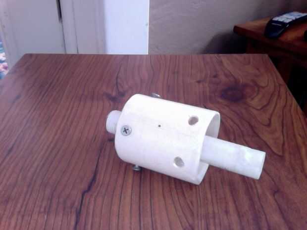 2. utiliza un dremal para hacer los agujeros paralelos al centro. Asegúrese de que son rectas ya que se fueron el perno pasa a través de mantener el cohete.