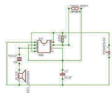 Pero su cuerpo es también una resistencia! Así que elegir la resistencia y el condensador en relación a la resistencia de la piel puede utilizar el toque táctil como la resistencia de falta. Presionando más duro disminuye la resistencia de la piel y hace la echada del sonido go.