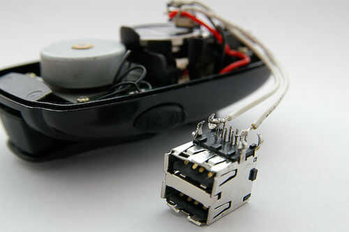 Ahora soldar el otro extremo de sus cables de puerto USB a la toma de cable de alimentación de Faro. Poner el USB positivo al rojo en el jack y el USB negativo al negro. Sea seguro conseguir la polaridad correcta.