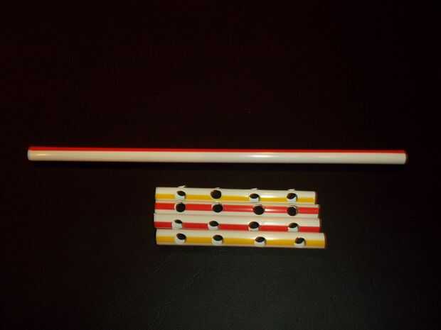 Comience cortando cuatro pajas más cortas para actuar como una matriz para los dedos. La imagen de abajo muestra una longitud sugerida de aproximadamente 1/3 la longitud completa de una paja.