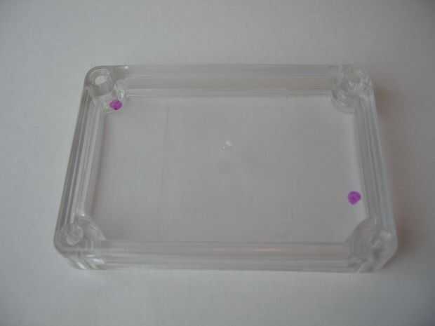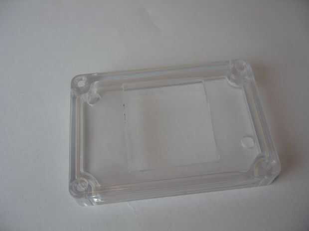 Ahora, poner un tablero de arranque del LCD con la pantalla quitada encima del PCB y del calor hasta la envolvente de metal con un chorro ligero o similar. Cuando la tapa de acrílico transparente se coloca sobre el metal caliente, se marca el contorno exacto y permite un corte fácil con una herramienta giratoria. Probablemente lo podría hacer con algo como pintura sin necesidad de calor.
