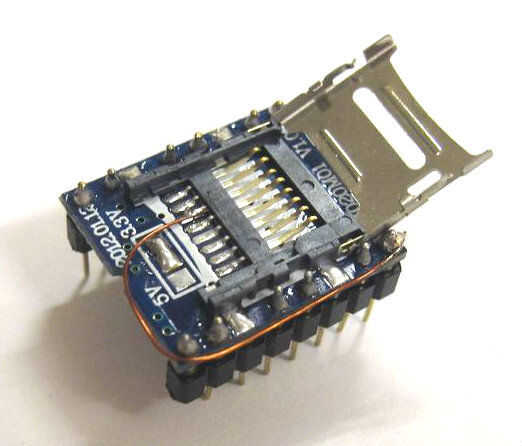 Si usted no puede conseguir una tarjeta SD con la porción levantada en la parte posterior (ver foto) entonces usted no puede encontrar que desempeña confiablemente. La manera de solucionarlo es pasador corto 6 de la tarjeta SD a la tierra. Creo que esto es esencialmente un enable pin en la tarjeta SD y algunas tarjetas quizás no son lo suficientemente rápidas y necesitan ser activado todo el tiempo. Un pequeño cable desde el conector de 6 pin de la tarjeta con el conector de tierra del módulo (pin 8 del módulo) a solucionar este problema. Con este Pin 6 al cable de tierra en el lugar, todas las tarjetas micro SD de 2GB o menos que está formateada con el formateador de SD parecen funcionar bien.