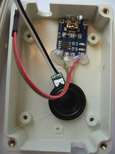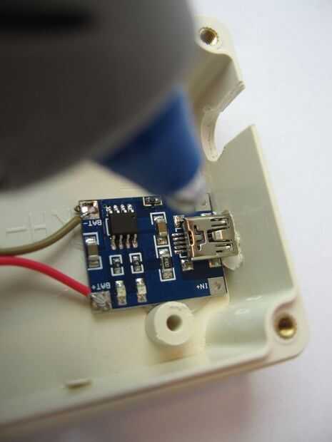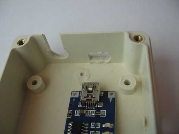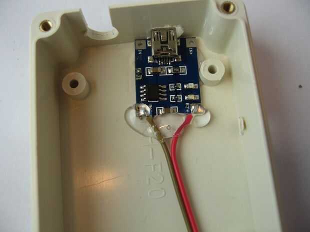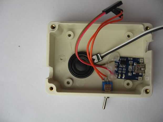 - Ahora Conecte el resto de los componentes que sólo fija a la caja - el tablero de carga debe ir con la polaridad correcta pero el interruptor puede ir de cualquier manera. Traté de hacer coincidir la polaridad pero no parece importar mucho.