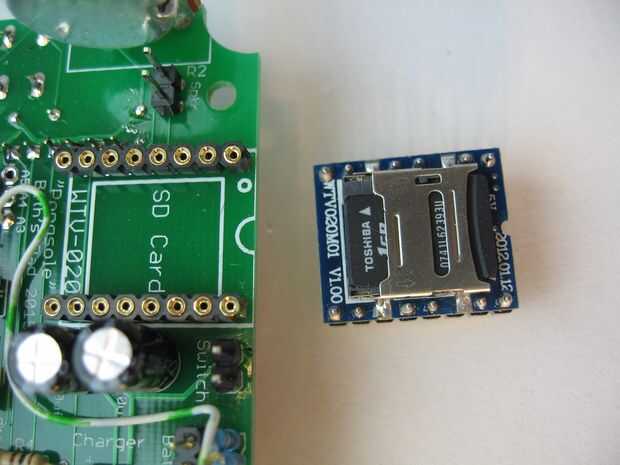 - Inserte la tarjeta SD en el módulo de sonido. Esto es incómodo - tienes que Deslice la cubierta de metal remite y levantarla, luego inserte la tarjeta, deje caer la cubierta y deslice hacia atrás.