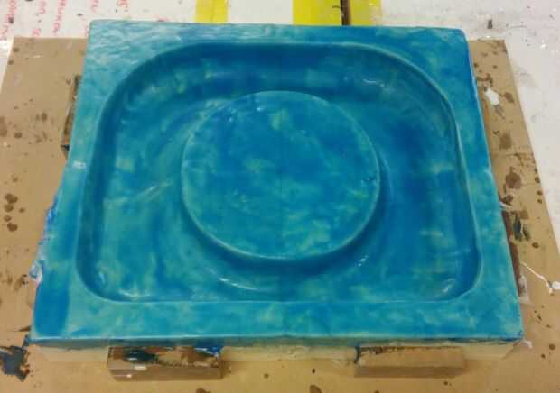 Poner una capa de la capa protectora de poliéster en el molde y, como en el paso anterior, todo liso, usando papel de lija húmedo.