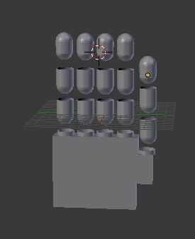 Shift + un y añadir una esfera, a continuación, presione TAB para entrar en el modo de edición mientras está en modo de edición Presione una para deseleccionar todo, y luego seleccionar sólo la parte superior mitad como foto 1 Haga clic en y arrastre el azul flecha hacia arriba hasta que parece foto 2 luego salga modo pulsando la pestaña de edición y duplícalo y moverlo sobre cada dedo para que el resultado final se vea como la foto 3