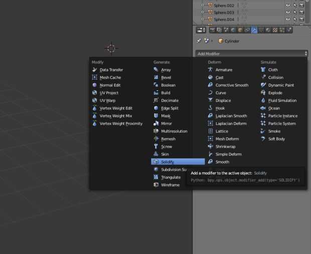 primero Shift + A para abrir el menú Agregar y vaya a la pestaña de malla y añadir un cilindro ahora presione S y Z a escala sobre el eje Z más pequeñas como una foto. luego ir a la ventana derecha y buscar el icono que se parece a la foto 3 luego haz clic en "agregar el modificador" e ir a donde dice solidificar como en la foto 4 y abrirá una ventana como en prensa solo foto 5 aplicar. duplícalo 4 veces más y colóquelos debajo de cada una de las articulaciones como en la foto 6