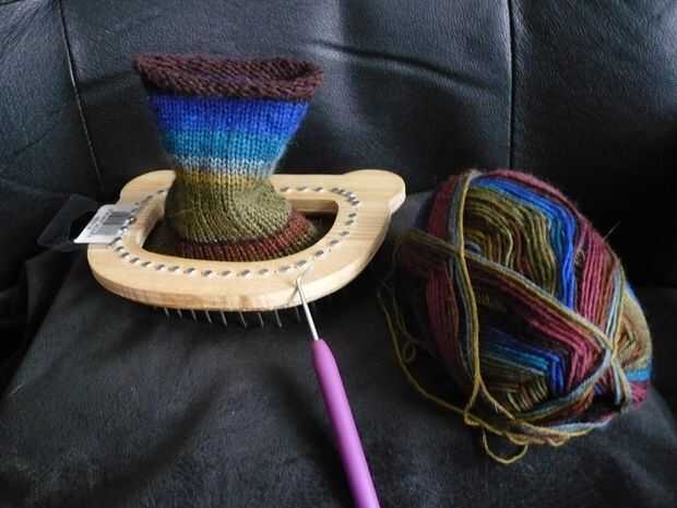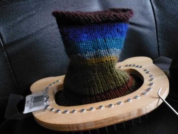 tuve algunos hilados para la fabricación de calcetines que estaban escondido en mi cubo de arte esperando que un proyecto como este.  Tengo agujas tubulares y doble agujas puntiagudas, pero muchas ganas de tejer un calcetín con un tejedor redondo.  Esto me dio la oportunidad de jugar y pasar un buen rato. Me encanta la opción ajustable peg como ha sido frustrante con el regular redonda tejedoras de plástico fijos, se pegan con un diámetro establecido y el número de clavijas junto con el diámetro de la clavija.  Ideal para hilado abultado peso o tener que doblar hilo para trabajar en el calcetero.  Más hilado para la venta es mucho menor por lo que uno pensaría que un tejedor con las clavijas más de la mitad sería más adecuado. Pero eso es parte de la diversión de la mano de elaboración y la reasignación de artículos para hacer lo que quieras.