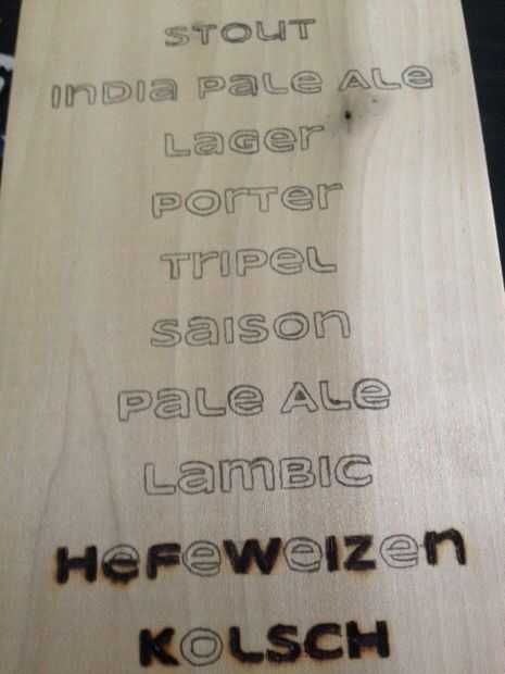 1. una vez que los tipos de cerveza se remonta a la madera, comenzar usando una punta de leña para delinear cada letra