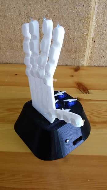 Este es mi proyecto escolar para 5 º año de secundaria (yo soy italiana, tenemos 5 años de secundaria).Consiste en una mano artificial controlada por un guante con sensores de flexión. La mano artificial reproduce los movimientos de la mano con el gu