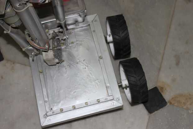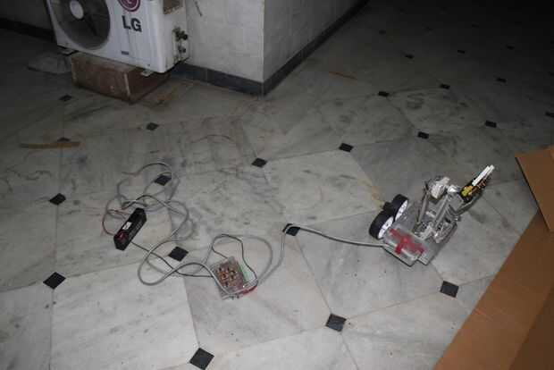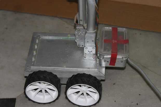 El chasis de mi robot es muy simple pero diseño propio. Básicamente es un 20gauge del metal de hoja (hierro), que se dobla en ambos lados en ángulo recto y hay cuatro orificios de montaje para la fijación de los motores conducción del robot. Valores de ángulo recto de aluminio se utilizan alrededor de la frontera para ocultar todas las asperezas y hacer que se parezca bastante. Tengo algunos bares stock de hierro soldadas en el chasis para actuar como contrapeso y evitar que vuelque. I utiliza canales de puerta sobre la base de perforar agujeros en él después de algunos intervalos e insertar conectores molex conectados en paralelo para conexión de LED como una especie de luz de advertencia.