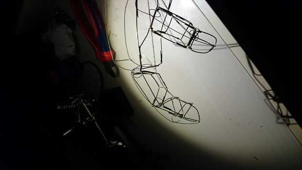 Empecé haciendo la palma de la mano, que es básicamente un cuadrado de alambre que he doblado para el dorso de la mano. Los dedos consisten en trapecios vinculados. Construir todas las piezas primero y montado, con los que mejor emparejado y tenía la longitud correcta. Los dedos permanecen en posición abierta gracias a la pequeña primavera que hice a mano. Tomé 0,5 mm alambre de piano y había enrollado alrededor de un destornillador fino. Tomó varios ensayos hasta que hice una fuente decente. En las fotos puede ver ensayos de primavera diferentes que no