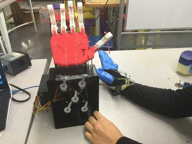 Conectar todo, coloque el arduino y el cableado en otra caja (también es conveniente, ya que funciona como un soporte para evitar que la mano caiga) instalar la fuente de alimentación externa y probarlo. No dude en continuar a jugar con el arduino codificación de parámetros para los sensores de flexión, como una ejecución impecable en la primera prueba no es esperar.