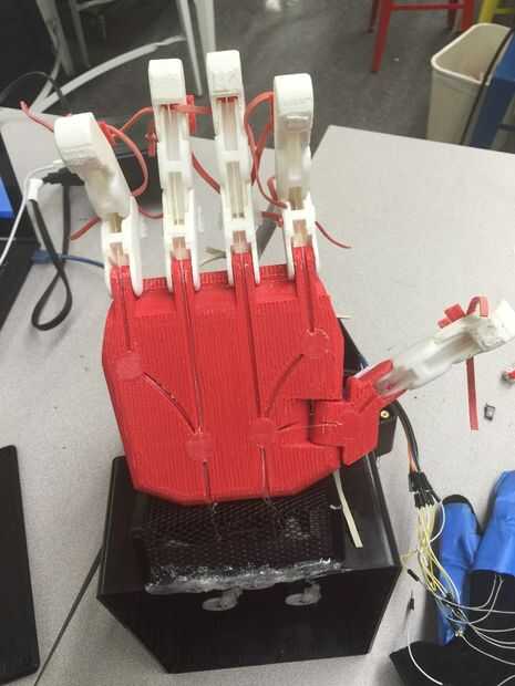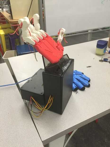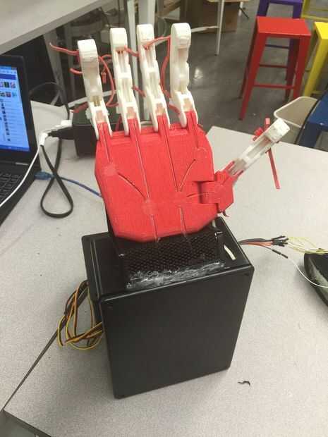El siguiente es el montaje de la mano robótica. Cada pieza encaje en su lugar muy fácilmente con poca fricción, aunque eso no puede ser cierto dependiendo del trabajo de impresión, aunque si es un problema, jalea de petróleo puede ser usada. Caliente de nylon del pegamento a la parte superior de cada dígito y alambre a través del chisme, entonces lugar una banda de goma entre dos dígitos en cada dos muescas y la mano sí mismo está lista.