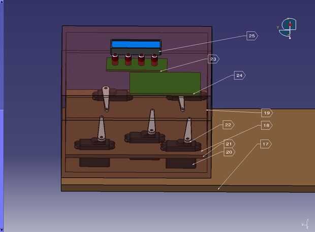 Esta mano robótica es construida utilizando cuatro servomotores y cuatro potenciómetros como sensores de posición. los sensores de posición se unen a un guante para que se utiliza para controlar el brazo robótico interactivo. La mano robótica represe