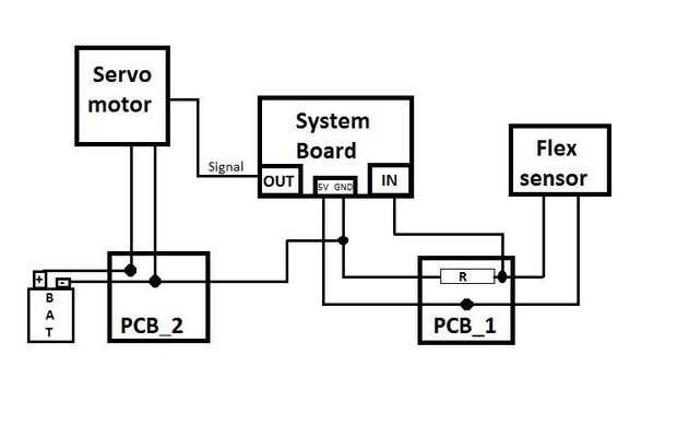 Los componentes básicos de la mano son los servos, la plataforma Arty, el guante y los sensores de flexión. El guante está construido con sensores de flexión que tienen resistencias variables que cambian su valor de resistencia al doblado. Está conectados a un lado de un divisor de tensión con resistencias de un valor constante en el otro lado. La plataforma Arty lee el cambio de voltaje cuando se doblan los sensores y activadores los servos para mover una cantidad proporcional. Los servos tiran cadenas que actúan como tendones, permitiendo que los dedos se mueven.