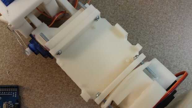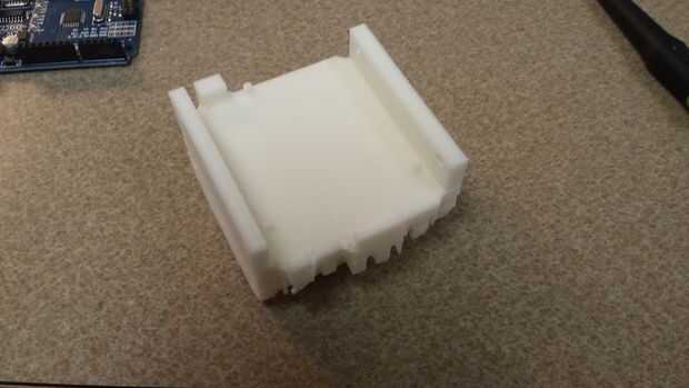 Si simplemente se quiere ser capaz de controlar la mano de un equipo, esta porción no es realmente necesaria excepto como espacio de relleno el antebrazo al codo conector; sin embargo, es una gran manera de hacer todo más autónomo y permiten mejor manejo de cables. Realmente no hice tanto trabajo en el diseño de esta parte, por lo que probablemente podría ser modificado para caber más componentes más eficazmente, o mantener una batería en su lugar mejor. Pero funciona, con la excepción de algunos de los agujeros para pernos en la mía se representa inútil de las capas de la parte inferior de la impresión pelar hasta la cama.