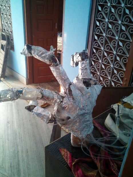 Esta mano robótica es construida utilizando cuatro servomotores y cuatro potenciómetros como sensores de posición. los sensores de posición se unen a un guante para que se utiliza para controlar el brazo robótico interactivo. La mano robótica represe
