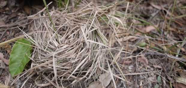 Recoger hierba seca de áreas cercanas y trabajar en un nido de pájaros. No te olvides de agregar las virutas del lado del eje en el centro de esta pila. Suponiendo que se han hecho ligeramente amarillos, son gran material a utilizar.