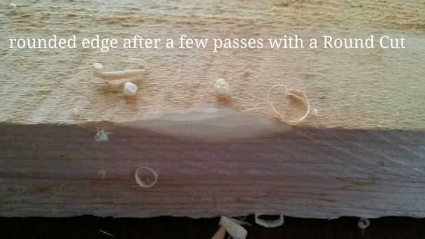 El corte redondo usa la parte plana de la hoja y se utiliza sobre todo para redondear esquinas, puede utilizar la curva de la hoja para hacerlo en espacios reducidos pero el piso le da un mejor control. Este corte también es bueno para quitar un montón de madera.